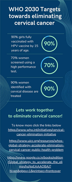 More than 50% of cervical cancer cases in the developing world are in the Asian-Pacific region, with a quarter in India. Human Papilloma Virus (HPV) is identified as the primary cause of cervical cancer and other genital cancers. Fortunately, timely screening and vaccination, as recommended by the World Health Organization (WHO), offer prevention pathways including elimination of cervical cancer.